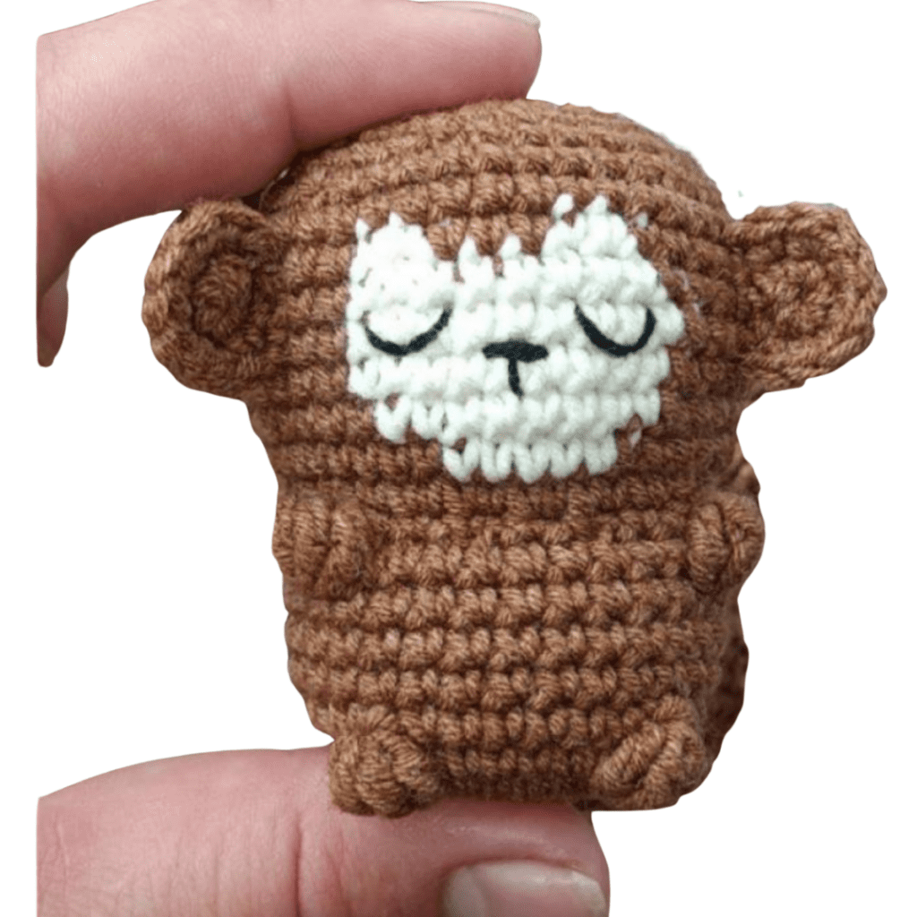This pattern, made with a thinner #2 or #3 yarn will make a great addition to your keychain inventory for markets. Or you can use a plush yarn of different weights to make a cute monkey toy.